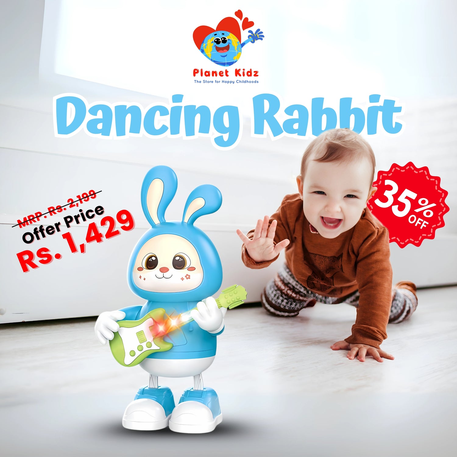 Dancing Rabbit Guitarist Toy for Kids | Musical, Light-Up, Dancing Bunny Toy