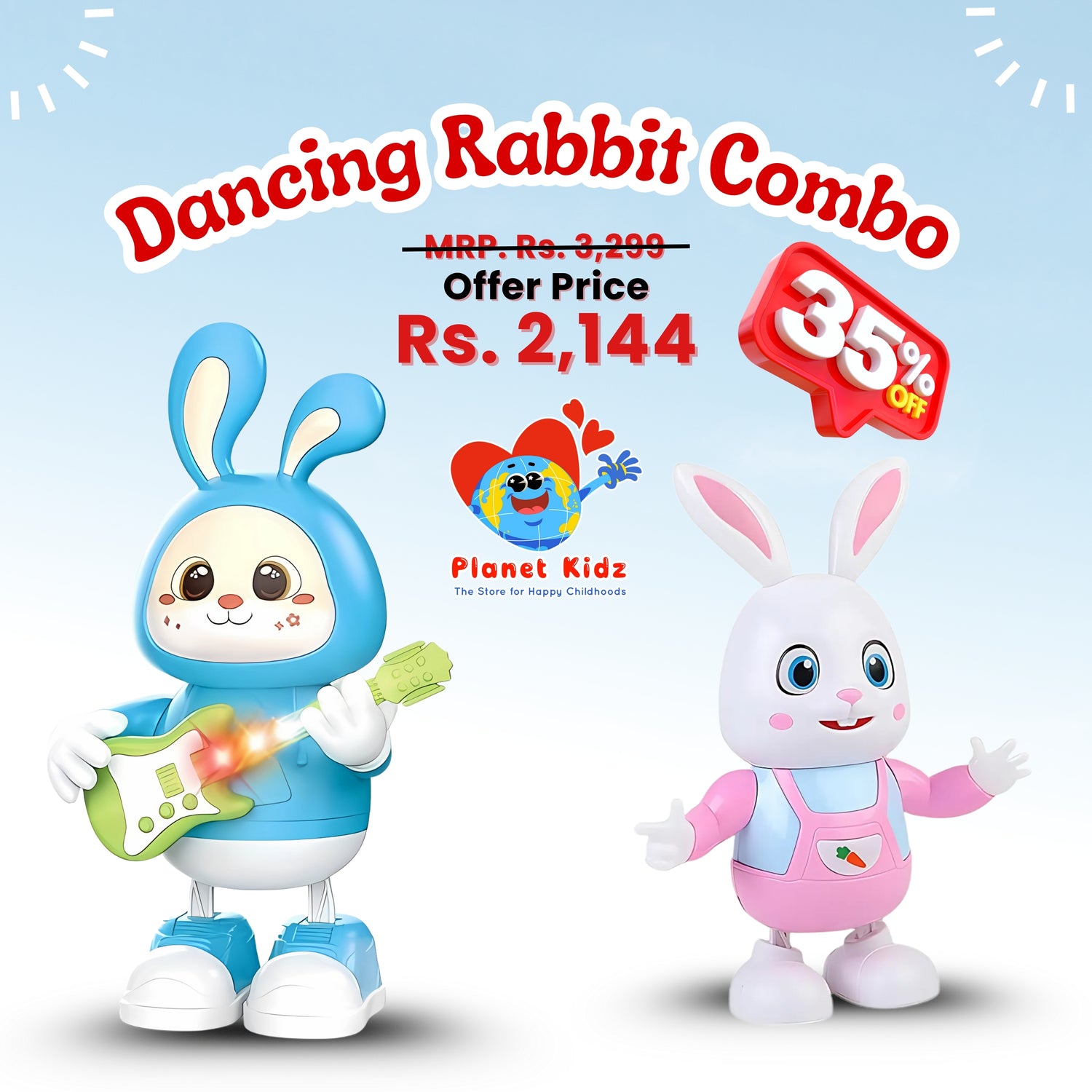 Let the rhythm of joy and music fill your home with the Rock & Hop Bunny Duo– a lovable pair of interactive musical rabbits that will instantly become your child's favorite companions!