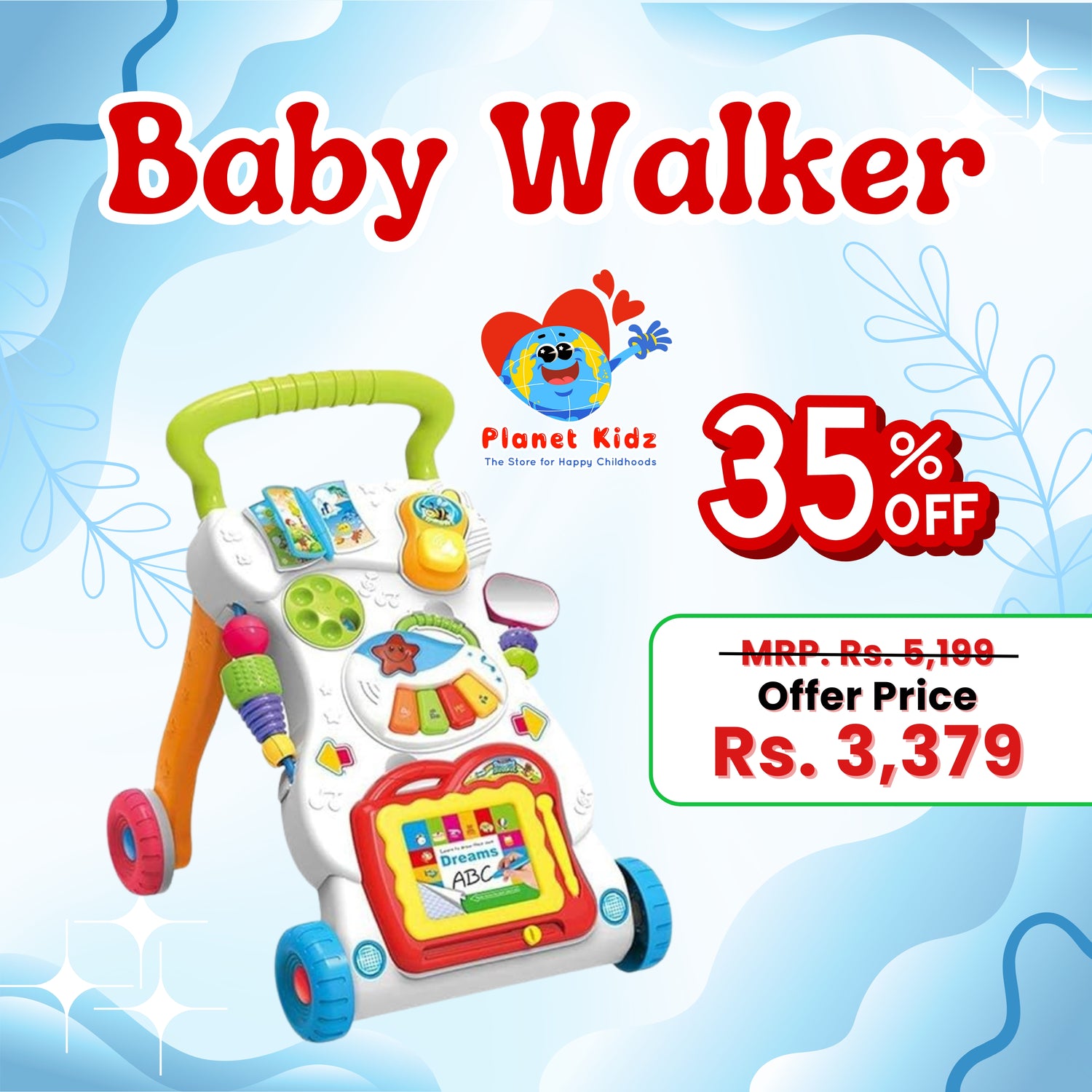 Give your little one the perfect companion for their developmental journey with the Planet Kidz Music Walker — a thoughtfully designed, safe, and multifunctional baby walker that supports your baby from sitting to standing to walking. Ideal for ages 6 months to 2 years, it’s not just a walker, it’s a complete learning station on wheels.